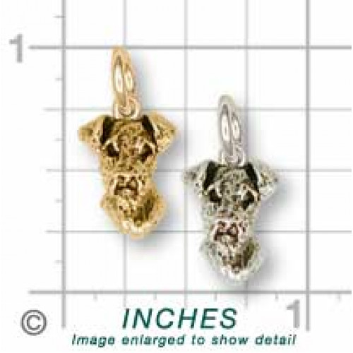 Airedaleterrier Huvud nr AR07 som hänge med enkel ögla kan du beställa tillverkat i sterling silver. Hundhuvudet är ca 10 mm brett och 13 mm högt, nästan tredimensionellt och, trots sin ringa storlek, mycket detaljrikt.