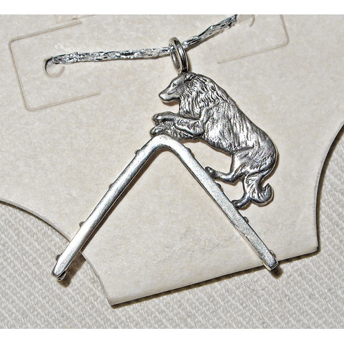 Hänget Border Collie Agility A-hinder tillhör vår serie med Agilitysmyckenoch det är är ca 28 mm brett och 28 mm högt. Smycket föreställer en Border Collie på väg över ett A-hinder och just det här smycket är ett hängsmycke i sterling silver.