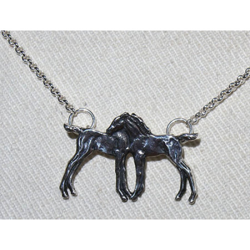 Hängsmycket "Bästa Vänner" är ett ljuvligt smycke med två föl som är just bästa vänner. De två fölen är monterade på en silverkedja som vi tar av till önskad längd när du bestället smycket. Det här smycket ät tillverkad i sterling silver.