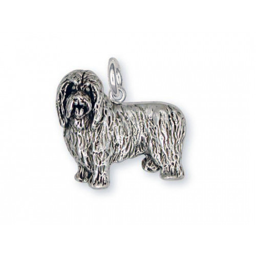 Stående Bearded Collie nr BCL01 som hänge med vanlig, rund ringögla, kan du beställa tillverkad i sterling silver. Hänget är ca 22 mm brett och det är delvis tredimensionellt med något ihålig baksida och mycket detaljrikt.