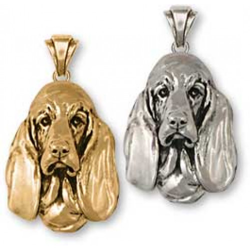 Basset Hound Huvud nr BAS02 som hänge med en vackert skulpterad ögla kan du beställa tillverkad i sterling silver. Hundhuvudet är ca 28 mm högt, det är nästan tredimensionellt med något ihålig baksida och mycket detaljrikt skulpterat.