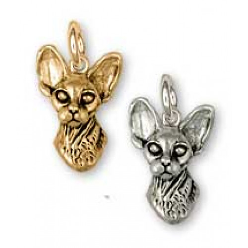 Devon Rex Katt Huvud DV02 som hänge med enkel rund ringögla. Det här katthuvudet är ca 13 mm brett och 18 mm högt med en tjocklek av ca 7 mm, det är delvis tredimensionellt med något ihålig baksida och mycket detaljrikt.