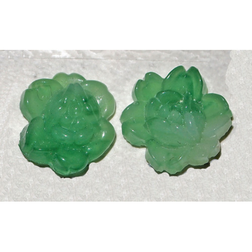 Örhängen i aventurin föreställande en ros där blomman är ca 10 mm i diameter.