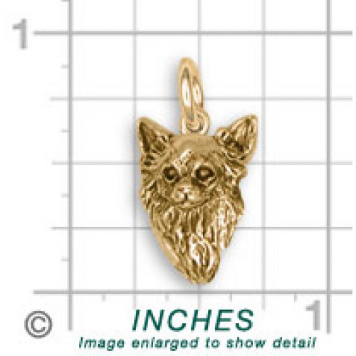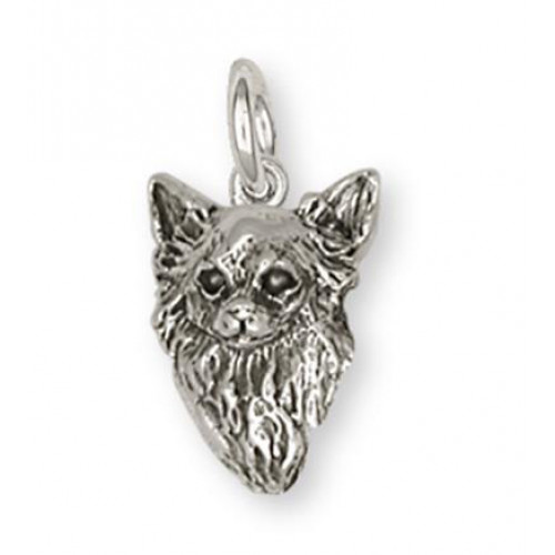 Långhårig Chihuahua huvud nr CH54 som hänge med enkel rund ögla kan du beställa tillverkad i sterling silver. Hundhuvudet är ca 16 mm högt, det är nästan tredimensionellt med något ihålig baksida och mycket detaljrikt.
