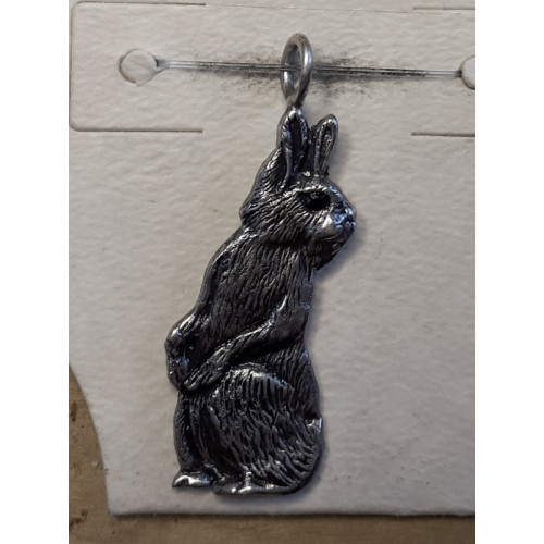 Smycket Kanin på Bakbenen är ca 12 mm brett och 27 mm högt, och det är tillverkat i sterling silver med en vikt om ca 4 gram. Det här smycket är tillverkat som ett hängsmycke med en fastlödd ögla för enkel montering på en halskedja. Den här kaninen är antikbehandlad och lackerad för att dess detaljer ska framträda extra fint.