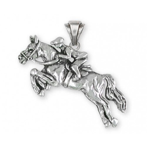 Ett hängsmycke med fart i, det här smycket föreställer en hoppande häst i full mundering med ryttare på ryggen. Hängsmycket är mycket detaljrikt med platt baksida och det har en vackert skulpterad ögla. Hästen har en liten, glittrande strasskristall från Swarovski som öga.
