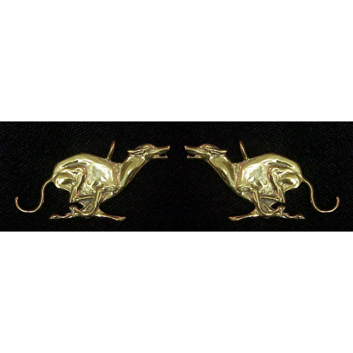 Greyhound Springande Liten modell B är en dubbelsidig design, och passar därför extra bra som örhängen. Hunden är ca 32 mm bred och 19 mm hög. Välj om du vill ha dina örhängen tillverkade i sterling silver eller brons, priset är detsamma för båda alternativen. Örhängena har krokar av allergivänligt rostfritt kirurgiskt stål, och om du vill, dekorerar vi dina örhängen med kristallpärlor från Swarovski i valfri färg. Ange om du vill ha pärlor och i vilken färg när du beställer dina örhängen.