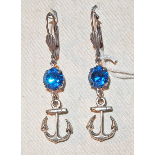 Örhängen med berlocker i form av ett ankare tillverkat av silveroxiderad tenn. Örhängena pryds av en stor, infattad strasskristall från Swarovski i färgen Capri Blue.