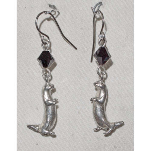 Med berlocker i silveroxiderat tenn föreställande uttrar.