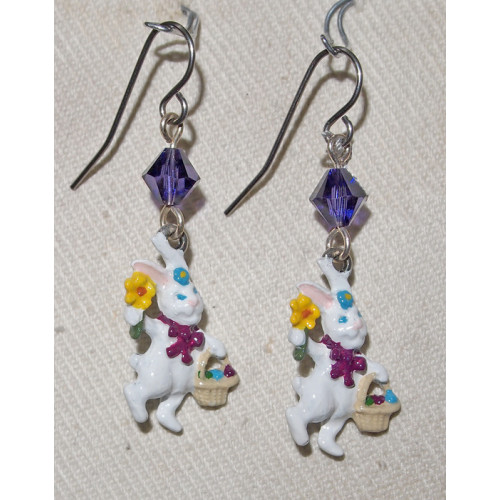 Örhängen med handmålade berlocker i silverpläterat tenn i form av en påskhare.