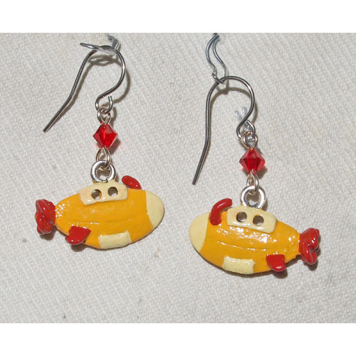 Undervattensbåt Gul Handmålade Örhängen nr e19233