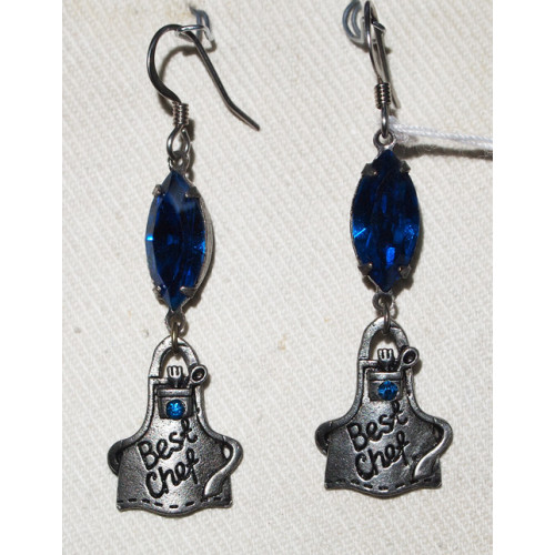 Örhängen med berlocker i tenn föreställande en förkläde med texten "Best Chef".