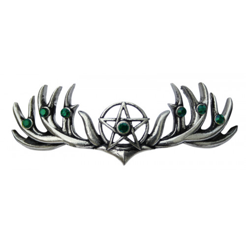 "For many Pagans, the antlers of the stag are associated directly with the fertility of the God. To wear a pentagram during a ceremony symbolises that you feel the connection with the elements and respect the earth. The number 5 as depicted with the points of the pentagram is associated with Mars, and symbolises severity, conflict and harmony through challenge."