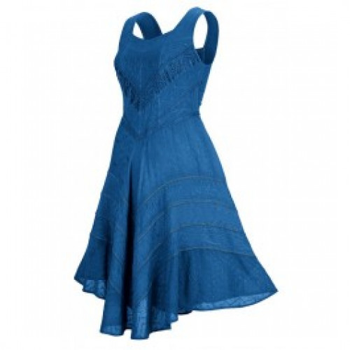 Klänningen Vanessa Midi är en kortare version av vackra klänningen Vanessa Maxi, och den är en underbart feminin klänning som är helt fantastisk och får dig att känna dig extra vacker. Den ärmlösa klänningen har breda axelband och ringningen är svagt hjärtformad. Vanessa är skuret i en mycket smickrande V-form mot midjan för att sedan bölja ut i den fantastiska, vida kjolen. Klänningslivet är broderat och har ett markerat parti fram med blank satin och soutache-broderier. Den spektakulära kjolen har broderade isättningar av chiffong och viscoscrepe samt asymmetrisk fåll; modellen är längre fram och bak än den är i sidorna. Vackert arbetade klänningen Vanessa är gjord i viscos, ett naturmaterial som tillverkas av träfibrer.