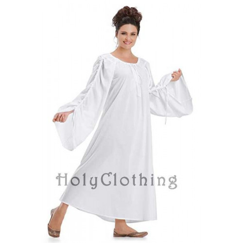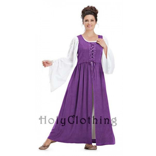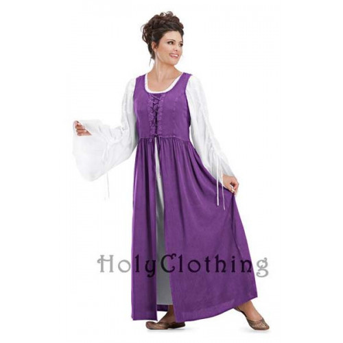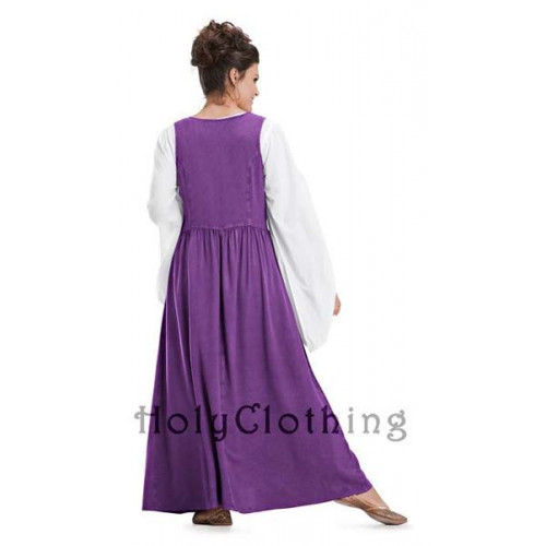 Bronwyn går utmärkt att bära med bälte runt midjan för dig som vill ha dina medeltida accessoarer lätt till hands. Västklänningen Bronwyn är gjord i viscos, ett naturmaterial som tillverkas av träfibrer, och underklänningen är gjord i tunn vit bomull.