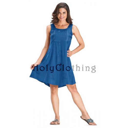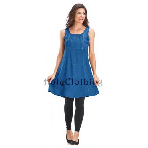Korta klänningen Cailean Mini har en mycket klädsam, nästan fyrkantig. urringning. Klänningslivet är i broderad satin och gotiskt inspirerade broderier går hela vägen längs sömmarna fram ända ned till fållen. Cailean är ärmlös med breda axelband och livet markeras med resår bak. Hela framsidan av klänningen är dekorerad och broderad. Den här korta klänningen kan med fördel användas som tunika över en kjol, ett par långbyxor, leggings eller shorts. Klänningen Cailean är särskilt klädsam på dig som har lite större byst. Tyget i Cailean är viscos, ett naturmaterial som tillverkas av träfibrer.