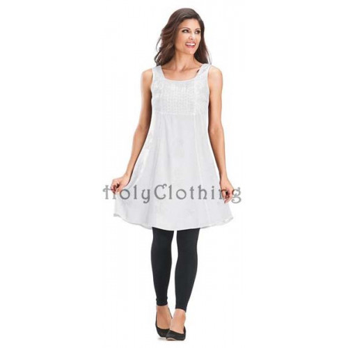 Korta klänningen Cailean Mini har en mycket klädsam, nästan fyrkantig. urringning. Klänningslivet är i broderad satin och gotiskt inspirerade broderier går hela vägen längs sömmarna fram ända ned till fållen. Cailean är ärmlös med breda axelband och livet markeras med resår bak. Hela framsidan av klänningen är dekorerad och broderad. Den här korta klänningen kan med fördel användas som tunika över en kjol, ett par långbyxor, leggings eller shorts. Klänningen Cailean är särskilt klädsam på dig som har lite större byst. Tyget i Cailean är viscos, ett naturmaterial som tillverkas av träfibrer.