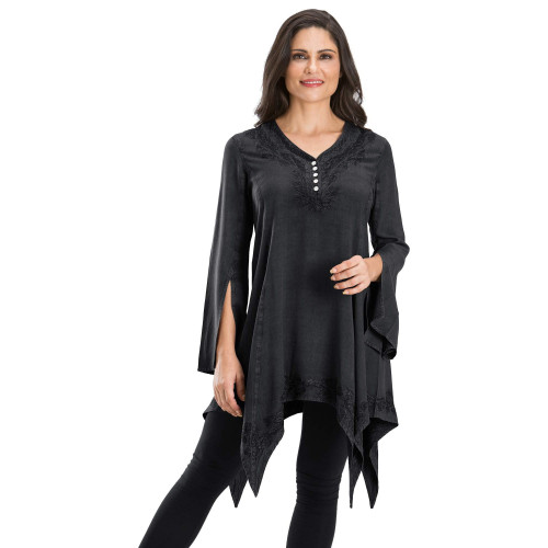 Toppen Piper är härlig modell som genom sin skärning är mycket klädsam för figuren. Piper har en assymetrisk fåll med fyra långa flikar och den passar lika bra till jeansen som till en vacker festkjol.