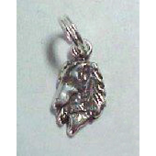 Berlockhänget Saluki Litet Huvud är ca 8 mm brett och 10 mm högt, och tillverkat i sterling silver. Hänget har en splitring för enkel montering på en halskedja eller ett armband.