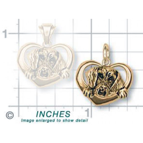 Strävhårig Tax i Hjärta (nr WD02) som hänge med enkel, rund ögla kan du beställa tillverkat i sterling silver. Smycket är ca 19 mm brett och 16 mm högt, det är delvis tredimensionellt med något ihålig baksida och mycket detaljrikt.