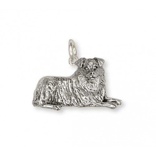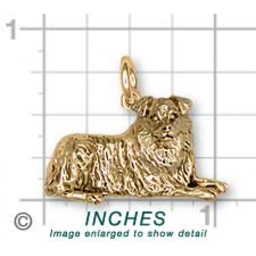 Liggande Australian Shepherd nr AU02 som hänge med enkel ögla kan du beställa tillverkad i sterling silver. Hunden är ca 25 mm bred, nästan tredimensionell med något ihålig baksida och mycket detaljrik.
