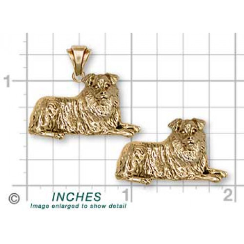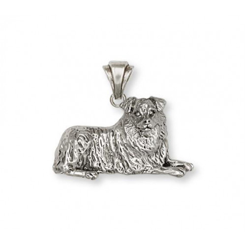 Liggande Australian Shepherd nr AU02 som hänge med vackert skulpterad ögla kan du beställa tillverkad i sterling silver. Hunden är ca 25 mm bred, nästan tredimensionell med något ihålig baksida och mycket detaljrik.