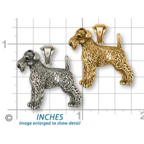 Stående Airedaleterrier nr AR09 som hänge med vackert skulpterad ögla kan du beställa tillverkad i sterling silver. Hunden är ca 25 mm bred och 22 mm hög, nästan tredimensionell och mycket detaljrik.