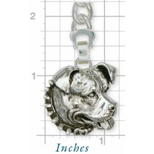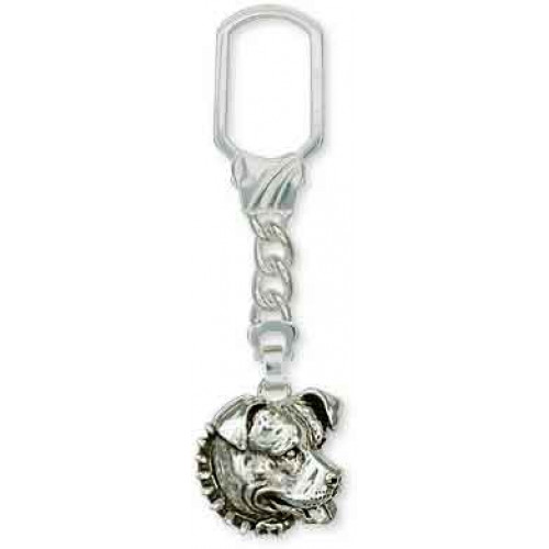 Pitbullterrier huvud nr PT08 som dekor på en nyckelring som är helt tillverkad i sterling silver. Hundhuvudet är ca 28 mm brett och 28 mm högt, det är nästan tredimensionellt med något ihålig baksida och mycket detaljrikt skulpterat. Notera att det här är en ganska tung nyckelring.
