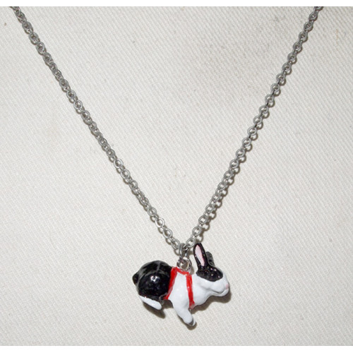 Kanin 3-D i Sele Handmålat Hänge med Kedja nr n15234