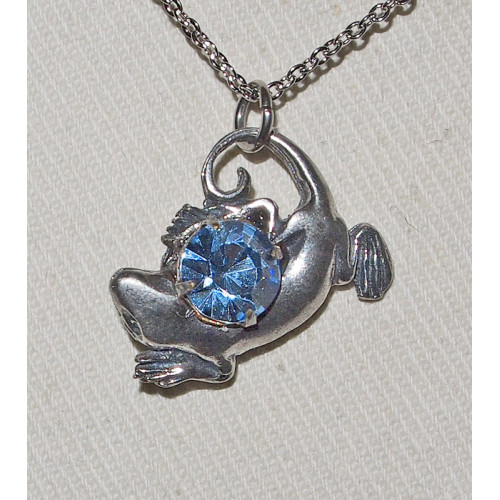 Hängsmycke i tenn i form av en geckoödla. I ödlan är infattad en 8 mm strasskristall från Swarovski i färgen Light Sapphire.