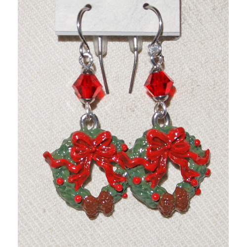 Örhängen med berlocker i tenn i form av vackra handmålade julkransar, ett smycke som gör succé på varje julfest.