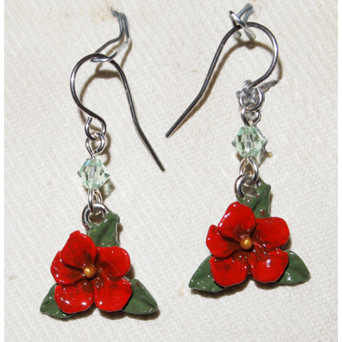Örhängen med handmålade berlocker i tenn i form av riktigt naturtrogna röda hibiskus, som ger din klädsel den härligt rätta julstämningen.